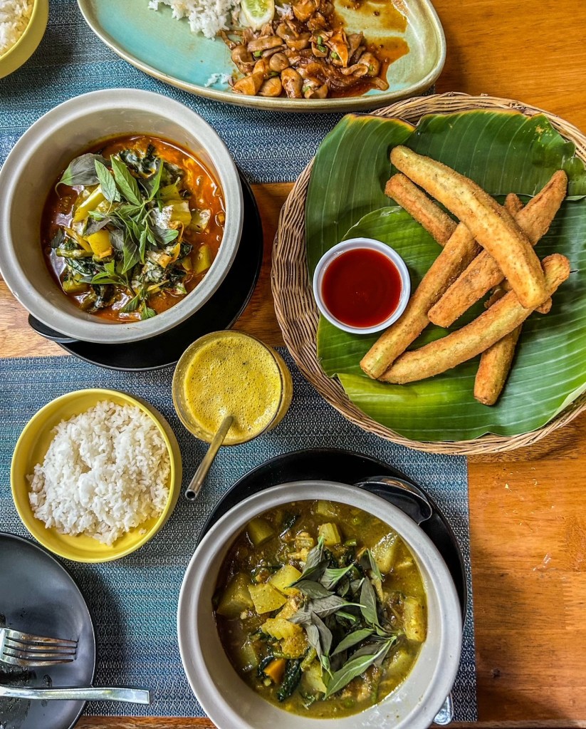 There are of course other options too if you’re looking for something more traditional. Banlle Vegetarian Restaurant for example is set in a traditional Cambodian wooden house with the lower floor set as a dining room surrounded by glass wall, and just outside is a beautiful garden of vegetables and herbs. This restaurant offers a mix of Khmer menu and western. I would recommend their Mushroom Lok Lak and Aubergine Tempura – yum!